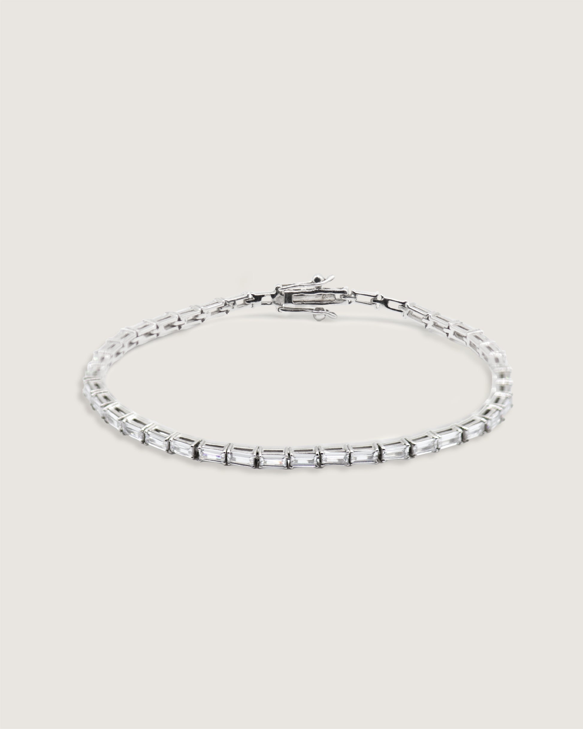 Sleek and understated. The Aura reimagines the tennis bracelet with horizontally set baguette stones for a softer, more fluid look. Designed for everyday wear — refined, versatile, and quietly confident.