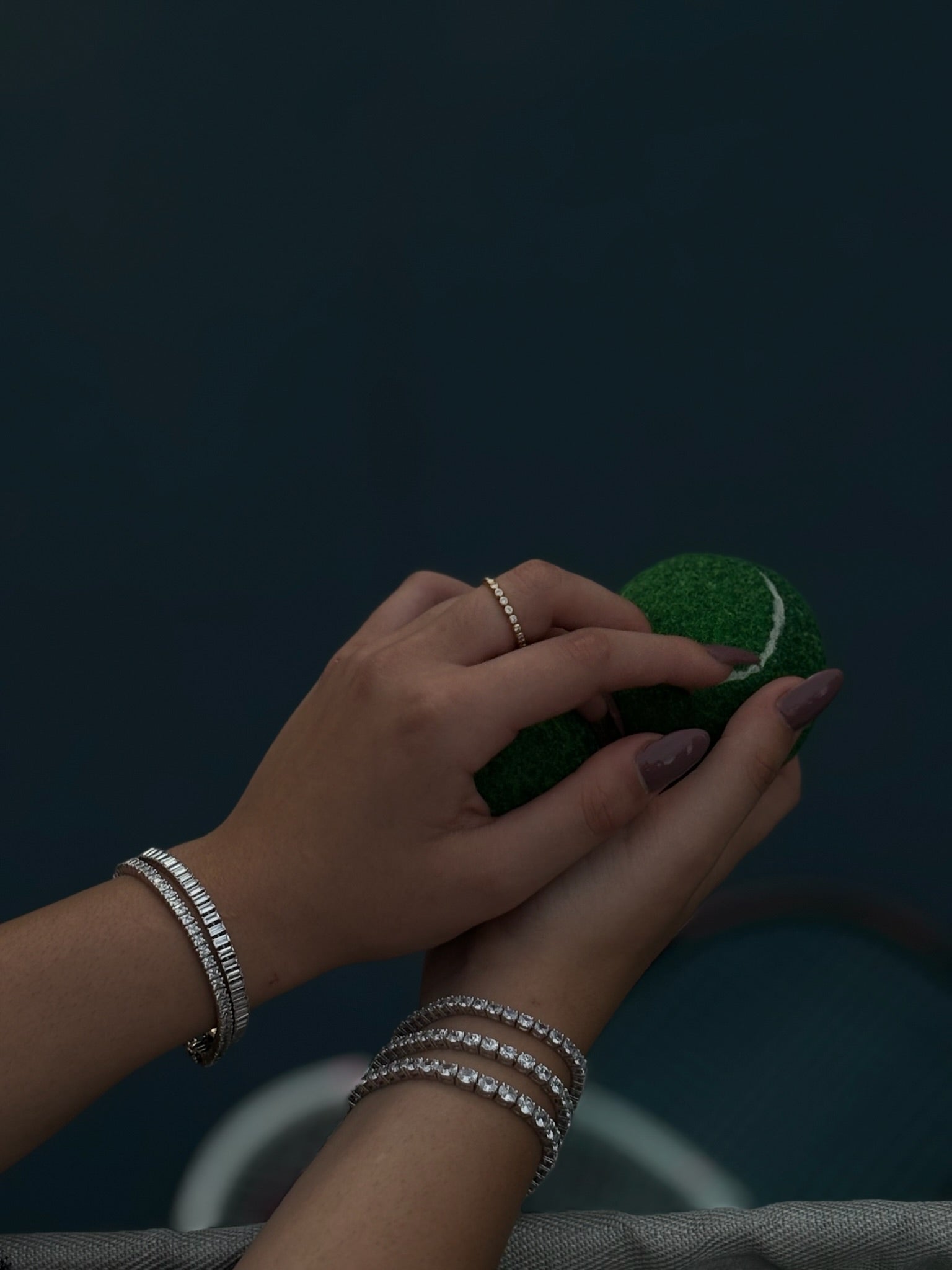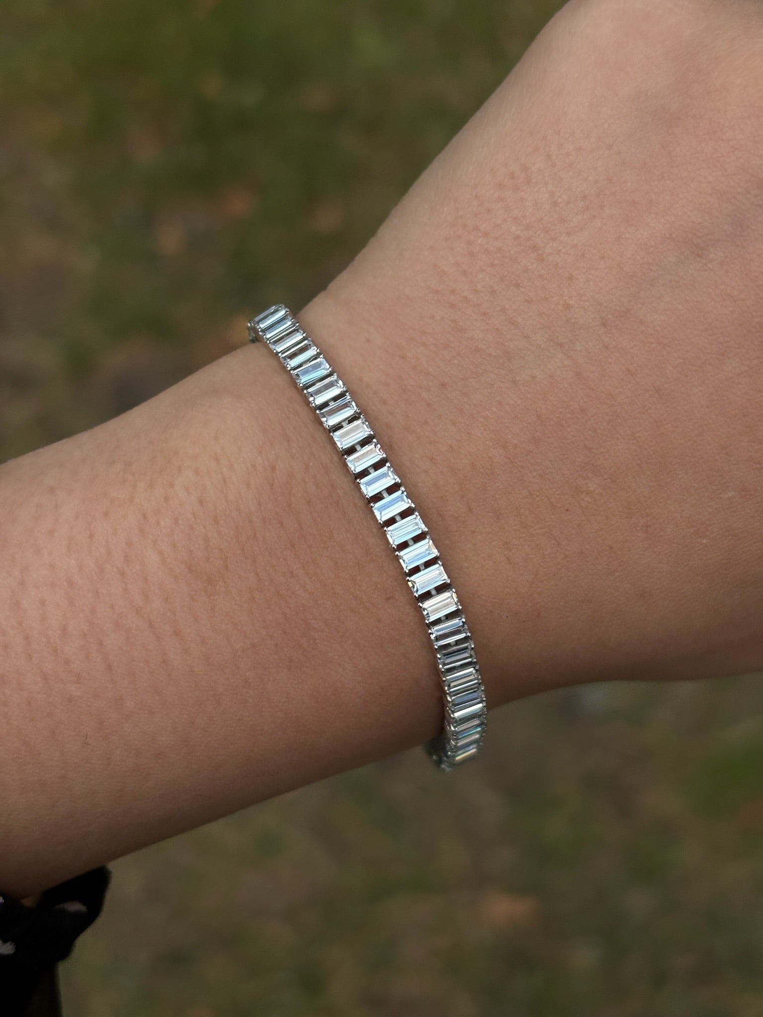A modern take on the classic tennis bracelet. Vertical baguette stones create a bold, refined silhouette that feels both strong and effortless. Designed to stand out on its own or layer seamlessly with your everyday pieces.